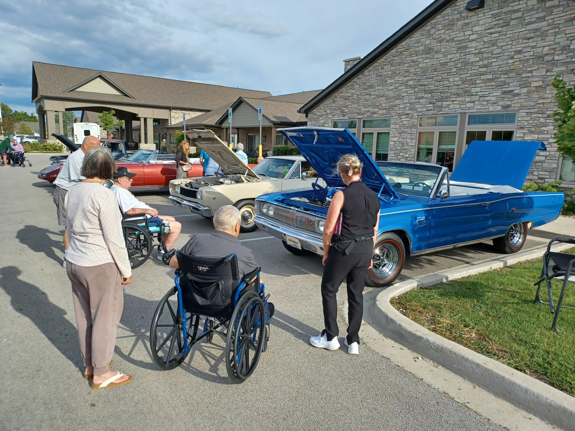 FCC has teamed up with the Lemont Car Club for several years now to present some car displays at local nursing/care facilities. While we had scheduled at show at Cedarhurst (just off of Rt.30 & Wolf Rd. in Frankfort) for mid-July, that day turned out to be a rainout, so an alternate date of August 27th was chosen with hopes of better weather. Although mid-week, the weather and turn out worked out fine. FCC fielded 6 vehicles with Lance Alden, Larry Claypool, Chuck Revetto, Dale Chapman, Tom Mantel and Paul Dybinski each bringing cars with the balance provided by Lemont Club members. A number of the residents did come out to view the cars and several were pretty knowledgeable about what they were looking at.