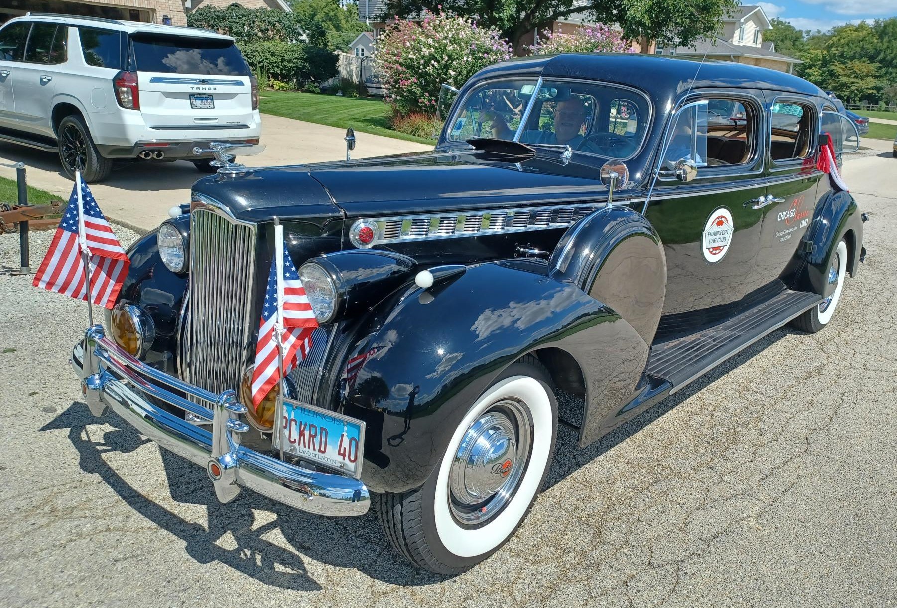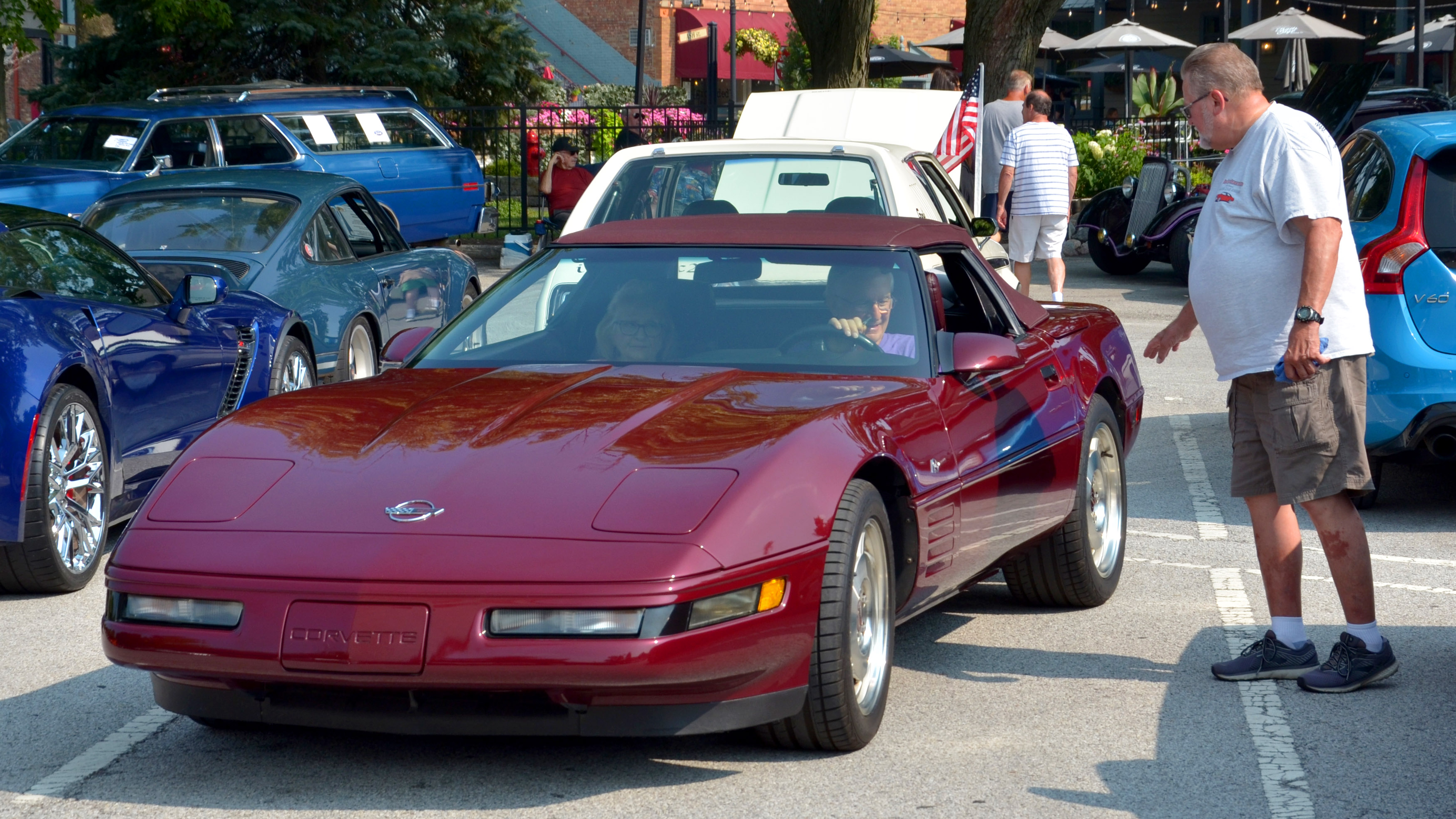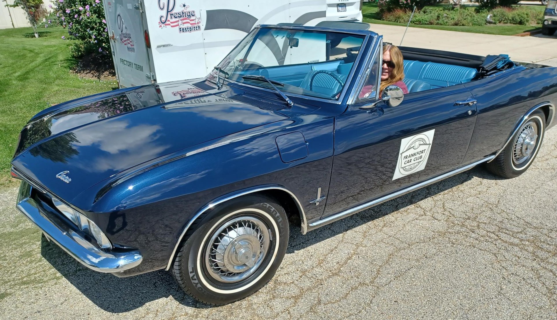 FCC once again participated in Frankfort’s Fall Fest Parade over Labor Day weekend. Mild temperatures brought huge crowds to town, which helped both drivers and our cars endure the slow crawl. On hand and leading our pack was Joe & Diane Tanzillo with the Herbie inspired #53 Beetle (picture 7) ; Dino Deluca in the yellow Corvette (pic. 2) ; Trevor Sibley in his Roush edition Mustang (pic 6) ; Shelly Claypool in her 65 Corvair (pic 4) ; Larry Claypool in the Subaru 360 (pic 8); John Blaskie in a 1984 AMC Eagle (pic 9); Lance in a Buick Roadmaster wagon (pic fall) ; Wayne Lucht in the 55 Plymouth (pic 5), and rounding out our group was Tom Mantel in the ’40 Packard Limo. (pic pac). The cars all behaved in the slo-mo mode, and the announcer was pretty well versed with our vehicles as we passed the reviewing stand. It’s on You Tube- we are at the 43:40 mark in the video.