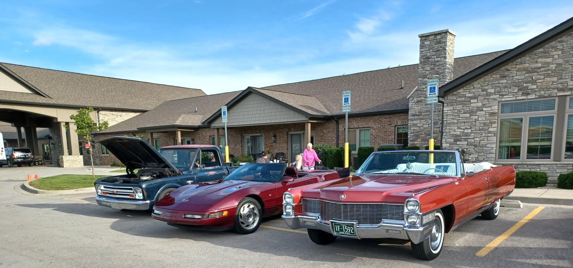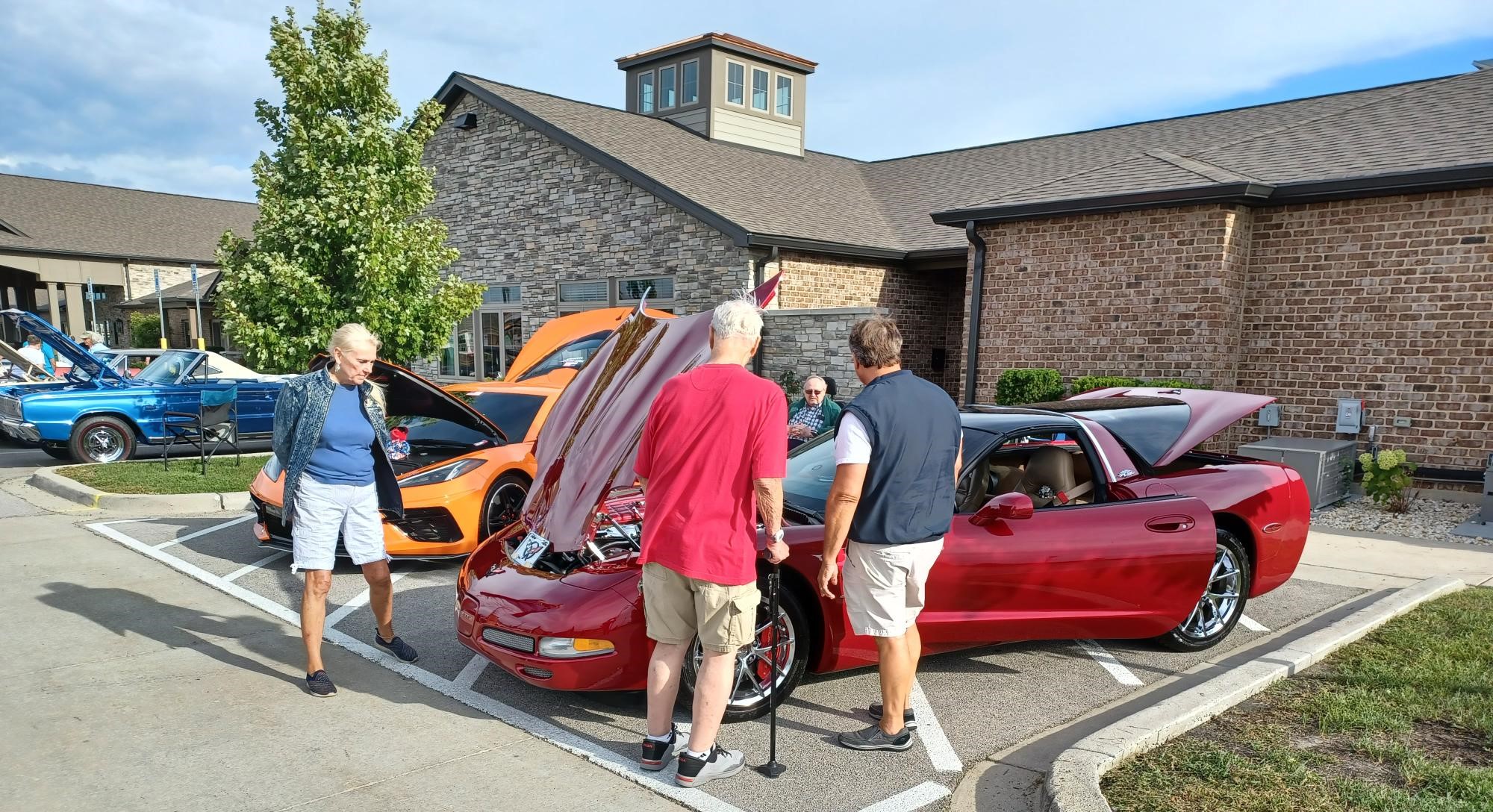 FCC has teamed up with the Lemont Car Club for several years now to present some car displays at local nursing/care facilities. While we had scheduled at show at Cedarhurst (just off of Rt.30 & Wolf Rd. in Frankfort) for mid-July, that day turned out to be a rainout, so an alternate date of August 27th was chosen with hopes of better weather. Although mid-week, the weather and turn out worked out fine. FCC fielded 6 vehicles with Lance Alden, Larry Claypool, Chuck Revetto, Dale Chapman, Tom Mantel and Paul Dybinski each bringing cars with the balance provided by Lemont Club members. A number of the residents did come out to view the cars and several were pretty knowledgeable about what they were looking at.