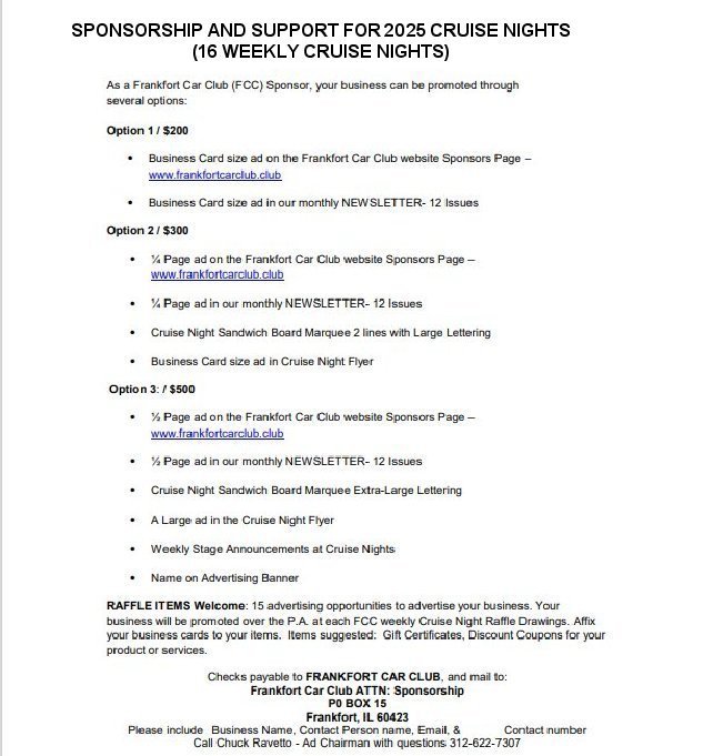 our sponsors! Tell them Frankfort Car Club sent you! |